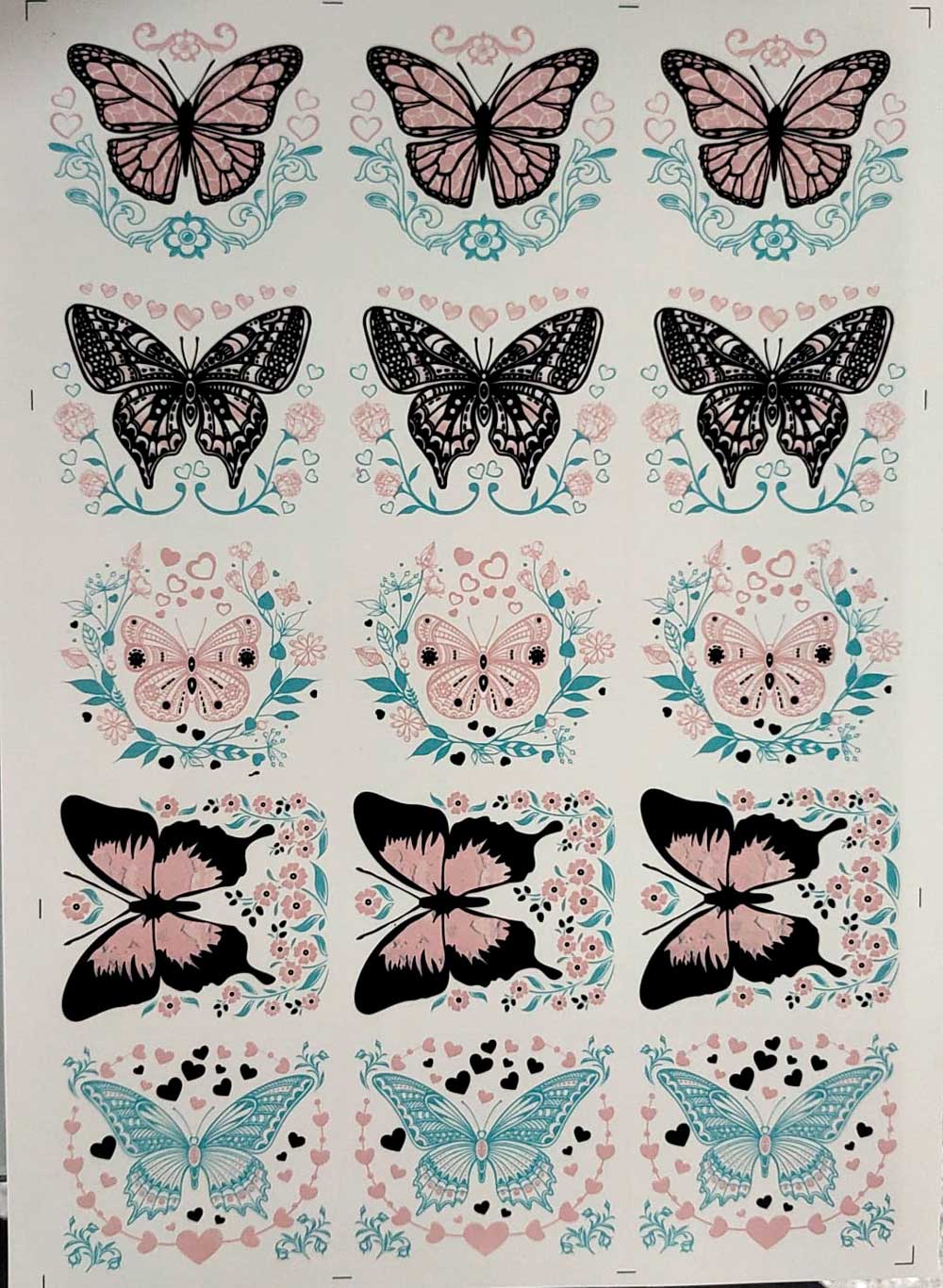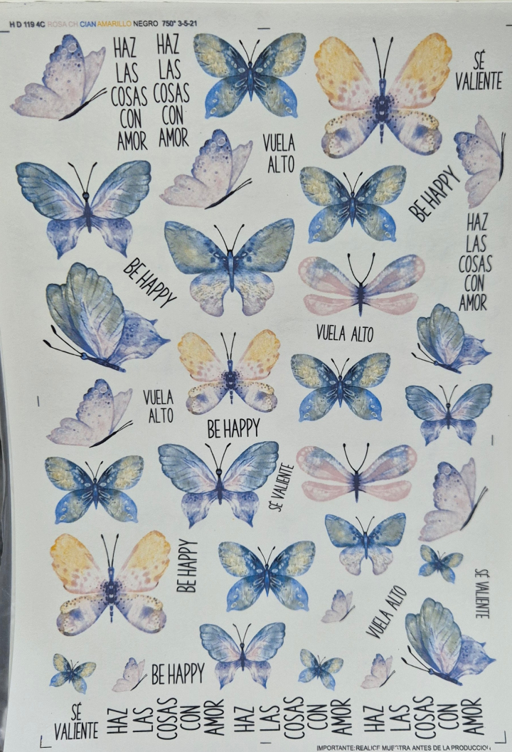 Calcos de flores, jardín y mariposas