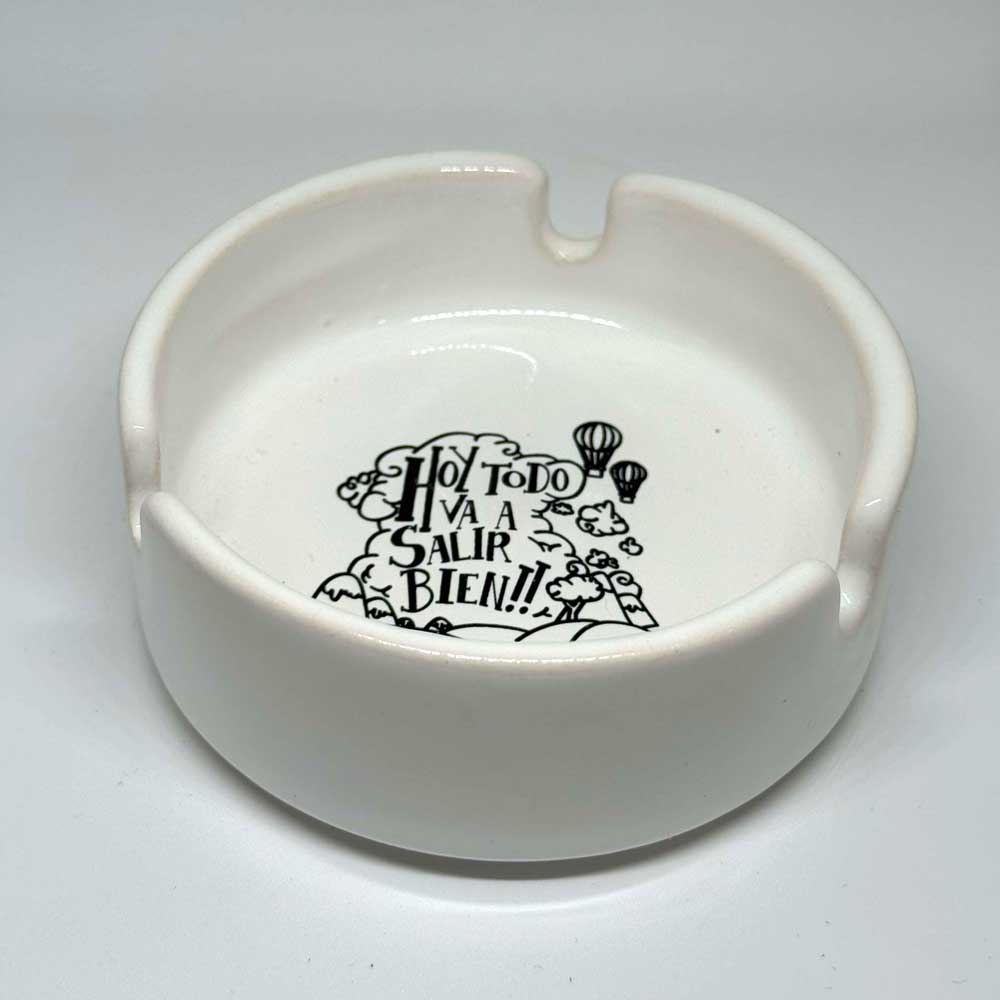 Cenicero pequeño decorado con calcos genéricos o personalizados. Ideal para souvenirs o locales gastronómicos. Apto para microondas y lavavajillas. Especificaciones: 8.9 x 3.5 cm.