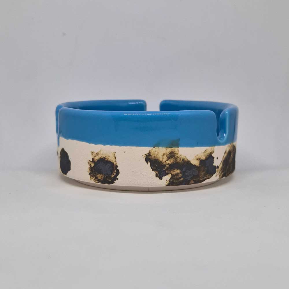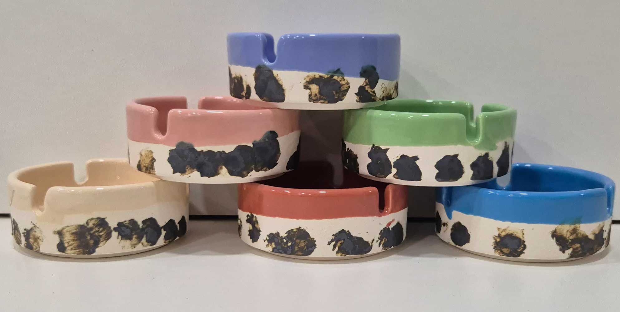 Cenicero artesanal pequeño, texturado y decorado a mano, en seis colores surtidos. Ideal para espacios cálidos. Apto para microondas y lavavajillas. Especificaciones: 8.9 x 3.5 cm.