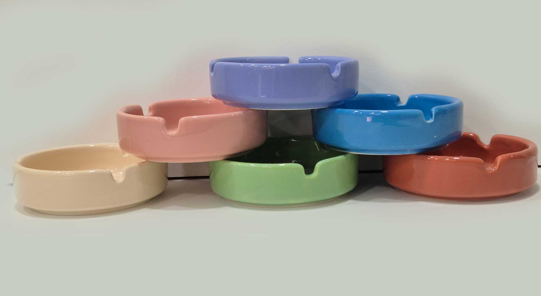 Cerámica esmaltada brillante en seis tonos surtidos: coral, crema, rosa, verde, azul y lila. Aporta un toque moderno y decorativo. Apto para microondas y lavavajillas. Especificaciones: 12 x 3.5 cm.