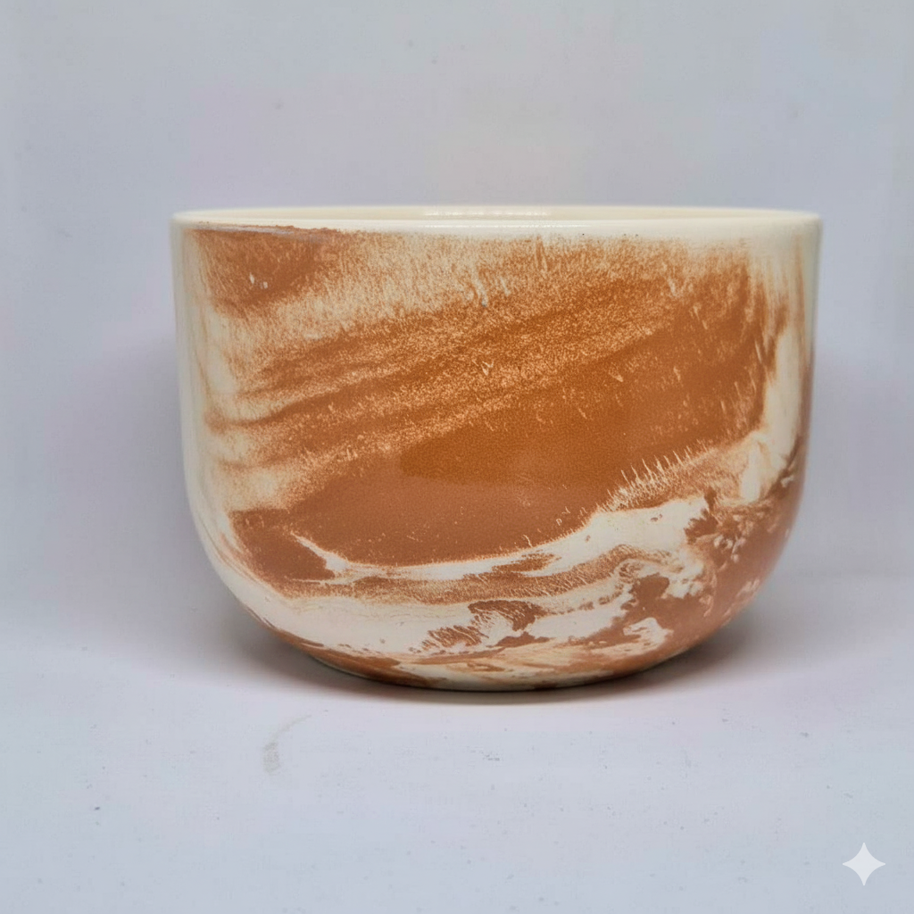 Cerealero marmolado con diseño artesanal, vetas únicas y un acabado brillante. Apto para microondas y lavavajillas. Especificaciones: 420 cc - 76 x 115 mm.