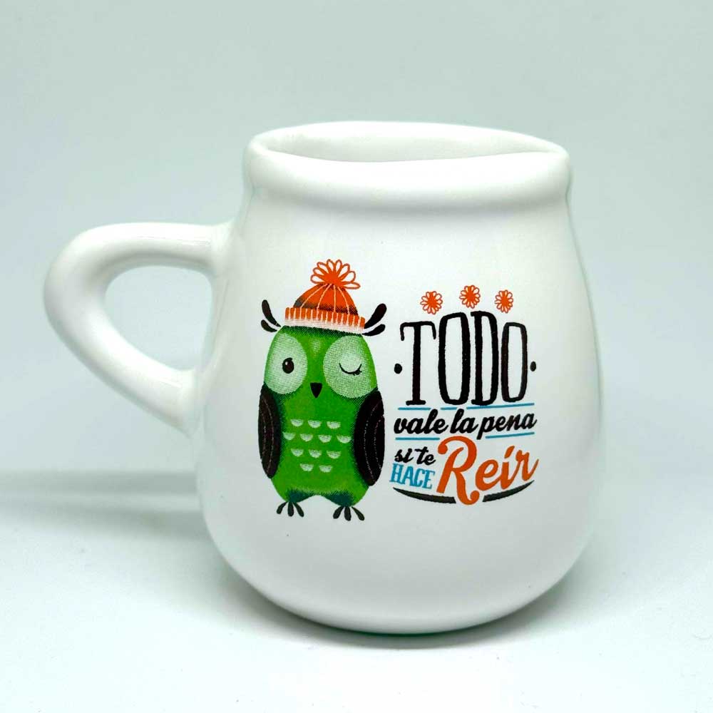 Mate decorado con calcos genéricos o personalizados. Atractivo y práctico. Apto para microondas y lavavajillas. Especificaciones: 7.8 cm x 7.2 cm.